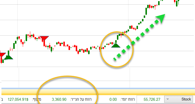 "אתה רואה את זה?" הוא מצביע על ריבוע נתונים בצבע כחול וממשיך, "הנוסחא הספציפית הזו מראה לנו במדויק מתי המנייה נכנסת למומנטום חיובי בהתאם לאסטרטגיה שבחרנו.