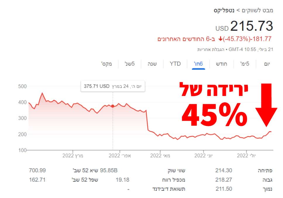 מה שקורה עכשיו הוא בדיוק זה: חלק גדול מהמניות התרסקו בעשרות אחוזים והגיעו למחיר של הזדמנות קנייה שלא ראינו במשך עשור. אמזון למשל התרסקה ביותר מ20%, גוגל ב-14% ופייסבוק (מטא) ב-42% ונטפליקס ב-45%!".