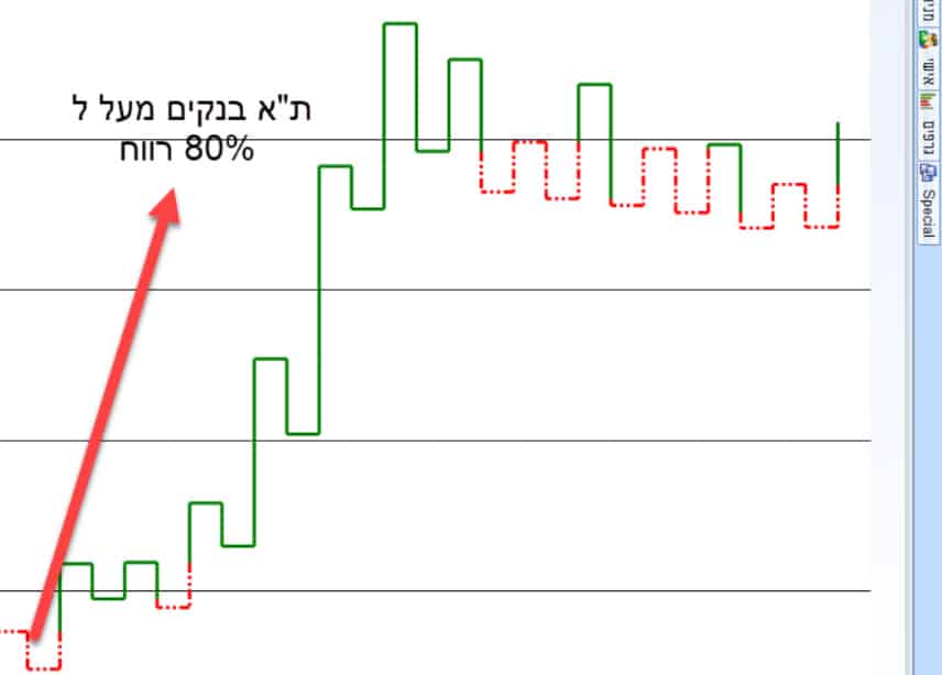 "אתה רואה את זה?" הוא מצביע על נקודת הגרף בצבע אדום, "הסורק הספציפי הזה מראה לנו במדויק מתי בדיוק המניה נכנסת למומנטום חיובי בהתאם לאסטרטגיה שבחרנו. מי שהשתמש בכלי הזה, הרוויח 50% ב-3 חודשים.